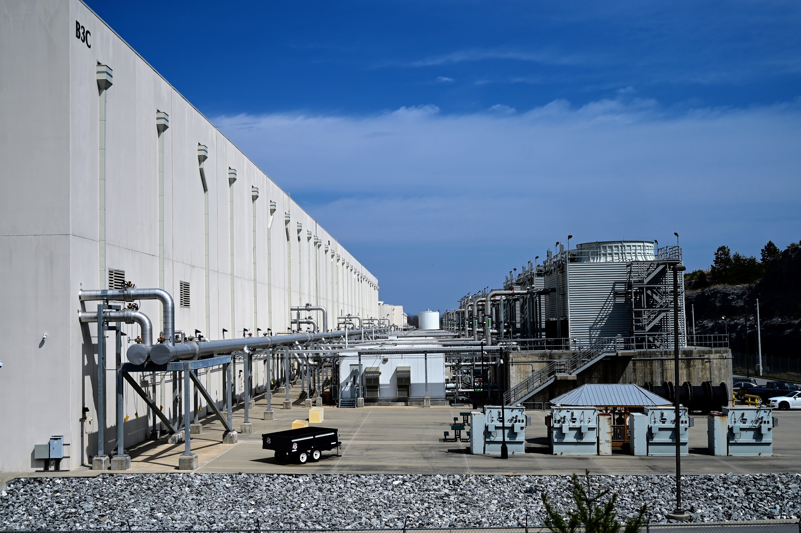 DownloadHere is a different view of the cooling towers in Buildings 2 and 3 on the Lenoir, North Carolina, data center campus. The buildings were built at different times, so the equipment outside each building is unique.